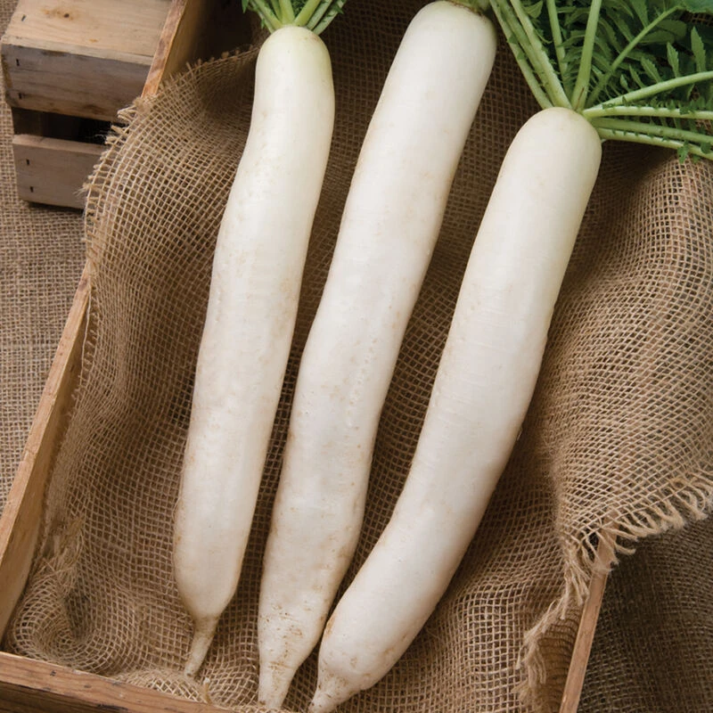 Endorsed by critical growers and markets as the choice Japanese-style variety for mid- and late-summer harvest. Uniform, long, tapered white roots average 16″ x 2 1/2″. Late spring and summer sowing.